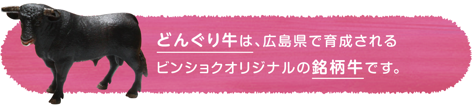 どんぐり牛は、広島県東北部の自然豊かな世羅郡世羅町にある契約牧場で、美味しさとお求めやすい価格でお客様にご満足いただけることを目指して生産されるビンショクオリジナルの牛肉です。